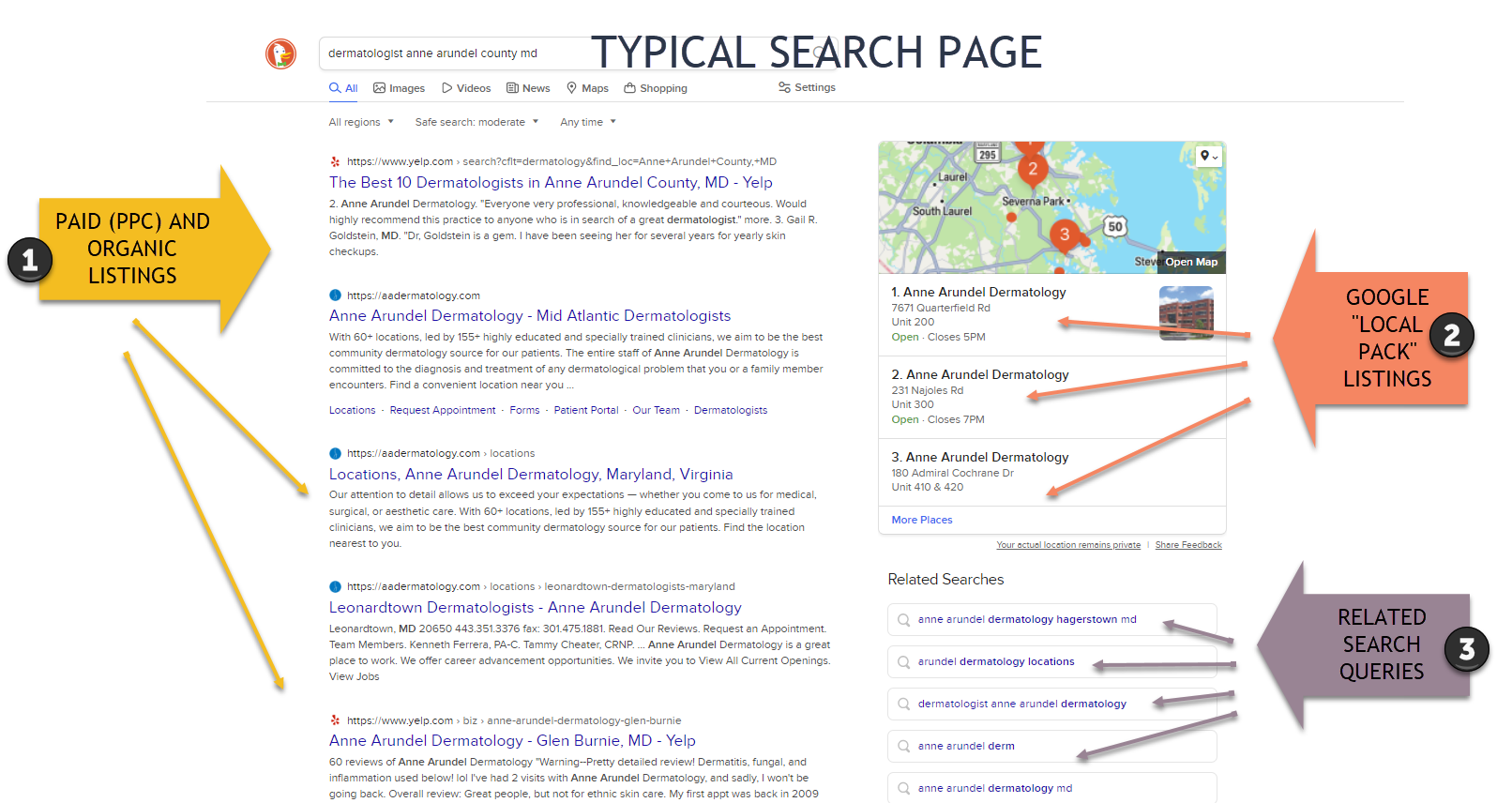 In our example above, our starting search was "dermatologist anne arundel county md."